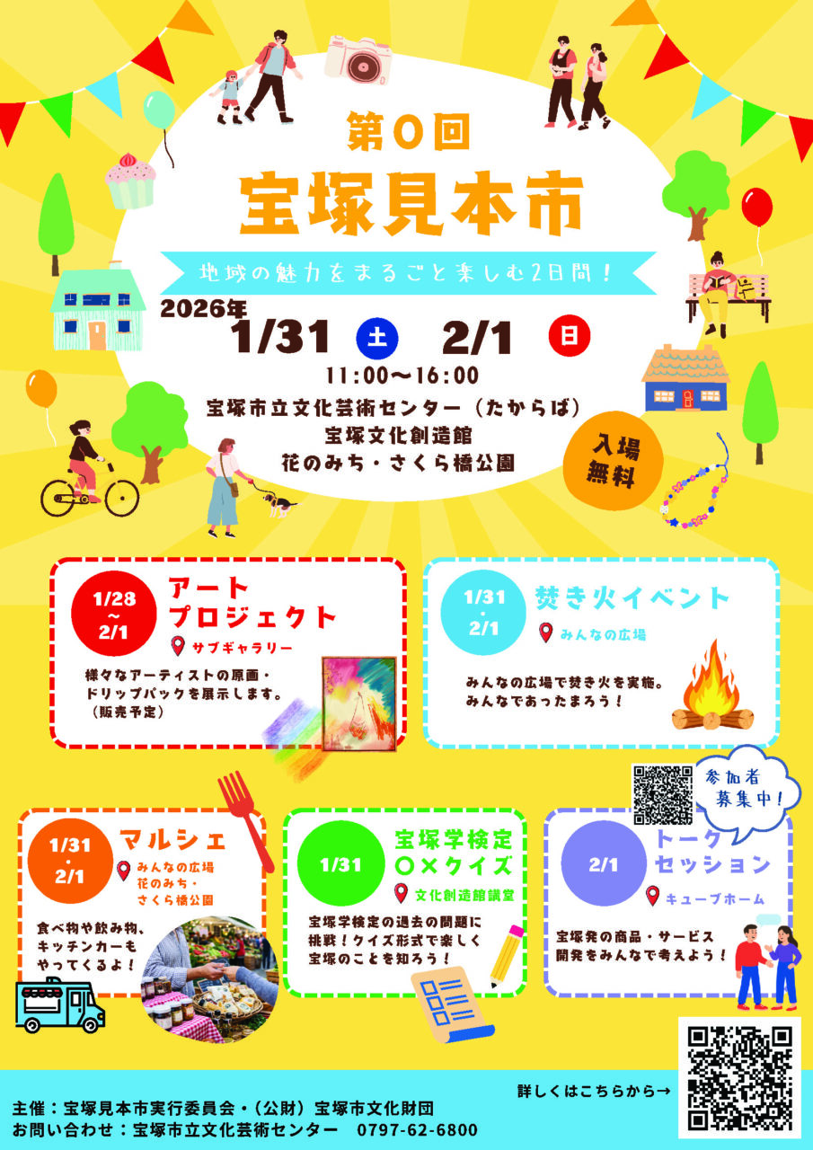 2026.1.31(土) - 2.1(日)第0回宝塚見本市地域資源を活用した”宝塚発”の商品を開発! 全国に宝塚の魅力を発信します。 イベントの詳細についてはこちら -