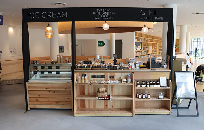 ベーグル、ジャム、アイス、コーヒー等を販売。