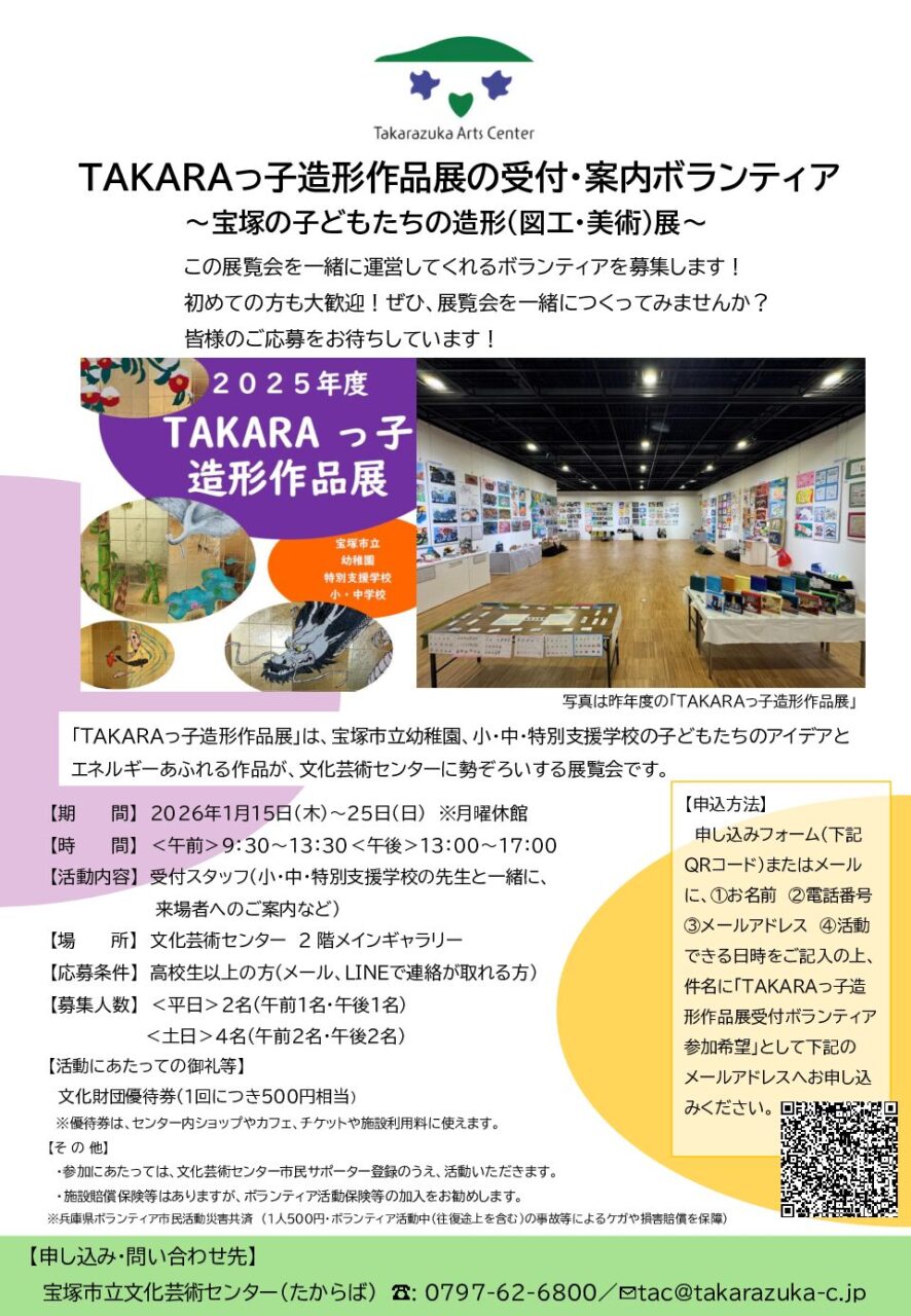 [市民サポーター] 【募集】TAKARAっ子造形作品展 受付・案内ボランティア