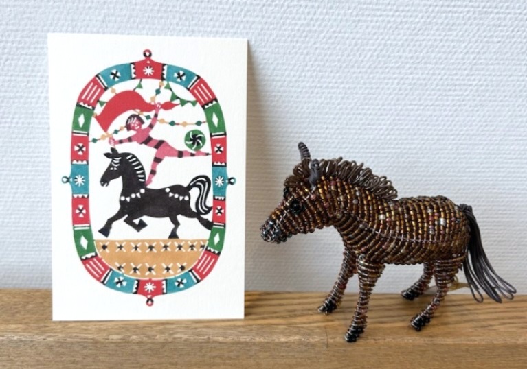 とくに、上の写真のワイヤー&ビーズアート『ZUVALANGA(ズワランガ)』さん作の馬は、大人気のため、再度作っていただいたものです。